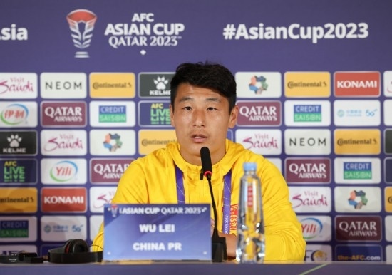1月16日,中國(guó)隊(duì)球員武磊在發(fā)布會(huì)上。新華社記者 丁汀 攝