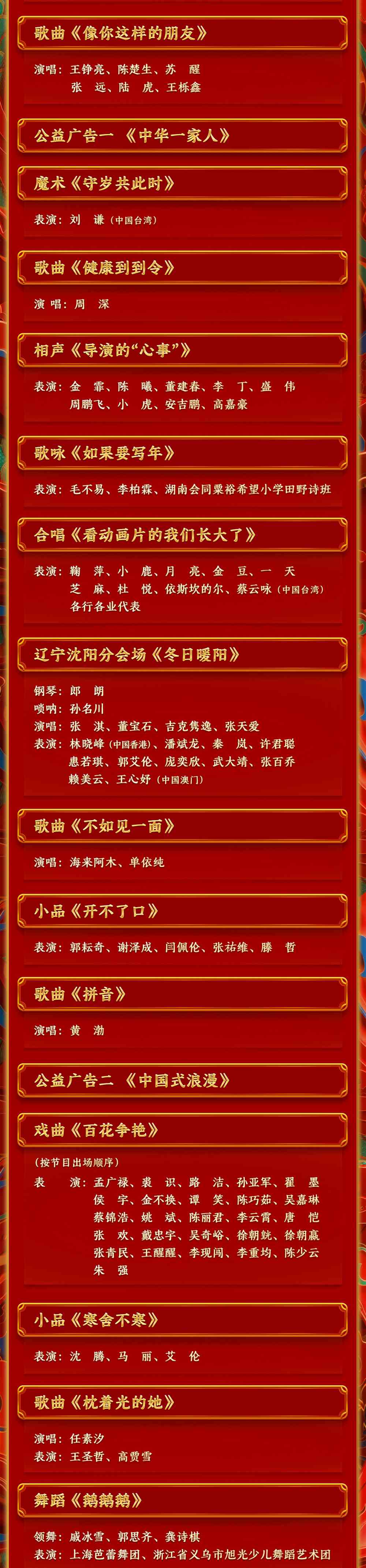 春滿中華,福到萬家。中央廣播電視總臺(tái)《2024年春節(jié)聯(lián)歡晚會(huì)》節(jié)目單正式發(fā)布。