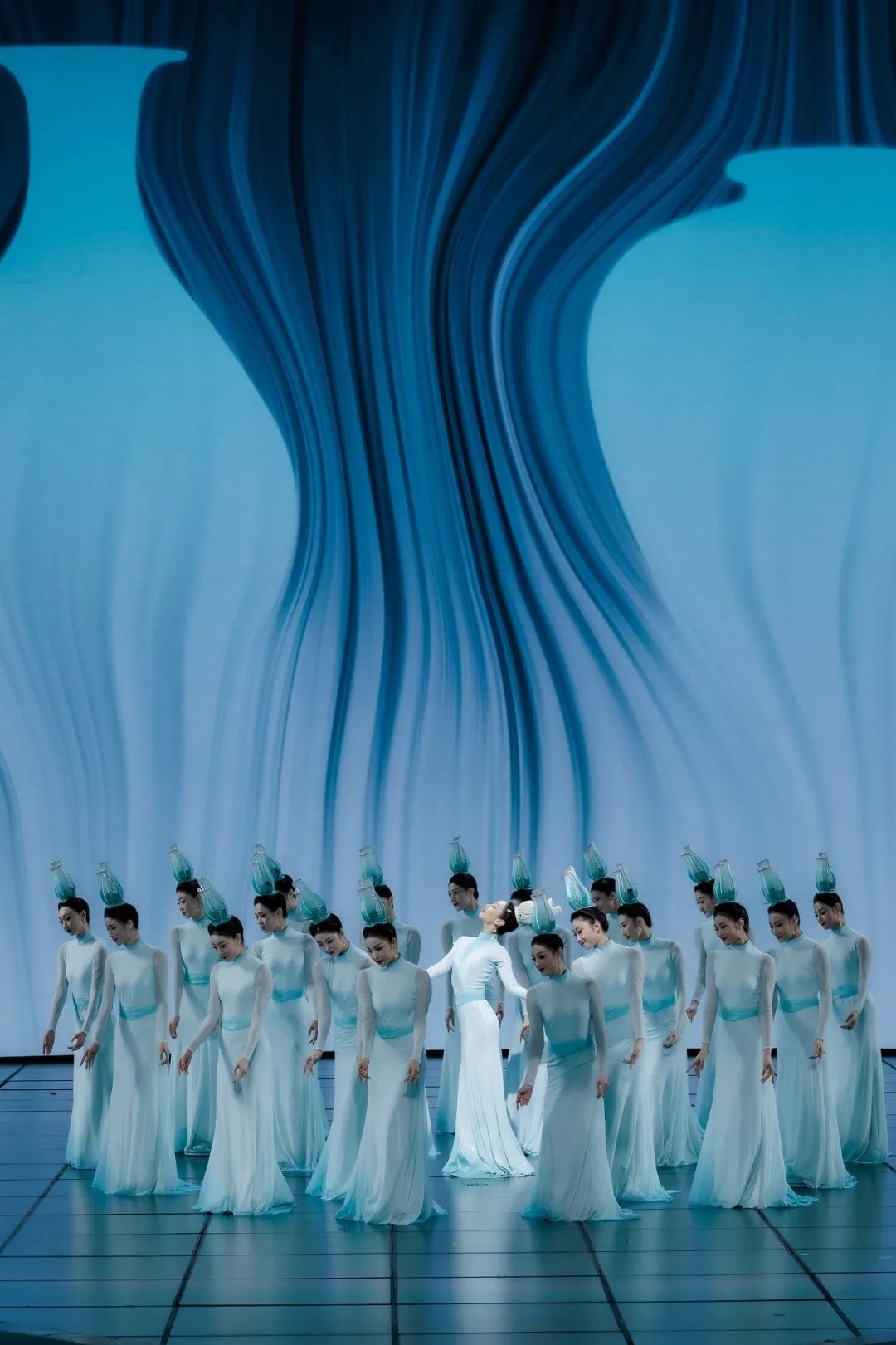 《瓷影》正是以青白瓷為視覺(jué)出發(fā)點(diǎn),演出服裝在色彩上著墨,提取“青”“白”這兩種傳統(tǒng)“正色”,展現(xiàn)出大繁若簡(jiǎn)的東方美學(xué)。通過(guò)舞者的肢體語(yǔ)言展現(xiàn)青白瓷跨越千年的獨(dú)特魅力。