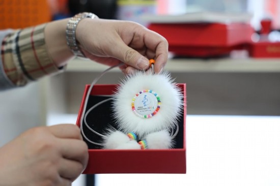 這是1月10日拍攝的以太陽花為底的“十四冬”紀念吊墜。新華社記者 王楷焱 攝