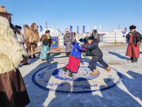為迎接“十四冬”,呼倫貝爾推出了豐富多彩的文化活動和產(chǎn)品。陳巴爾虎旗的牧民巴圖蘇和與合伙人在莫爾格勒河景區(qū)推出“天天冰雪那達慕”活動,設(shè)雪地搏克、騎馬射箭、“冰地嘎拉哈”、駱駝爬犁等項目,讓游客沉浸式體驗蒙古族文化與傳統(tǒng)運動。首次嘗試雪地搏克的河北固安游客張瑞堂,與一位蒙古族少年友好競技,他的姐姐則用手機記錄下了這段珍貴的經(jīng)歷。