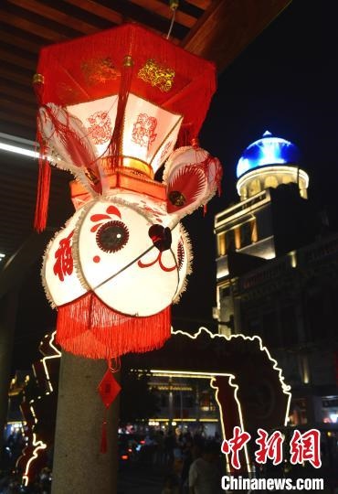 圖為2月20日晚,泉州中山路騎樓兩側(cè),花燈流光溢彩,美不勝收。中新網(wǎng)記者 張斌 攝