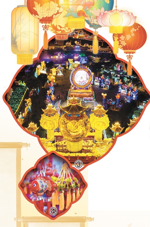 | 圖③:在四川省自貢市中華彩燈大世界舉辦的第三十屆自貢國際恐龍燈會亮燈。新華社記者 沈伯韓攝 圖④:在山東省濟(jì)寧市嘉祥縣,富有創(chuàng)意的裝飾掛件營造出濃郁的喜慶氛圍。姚 燁攝(人民視覺) |