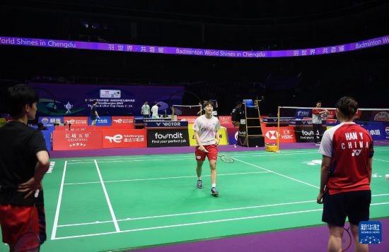 當(dāng)日,中國羽毛球隊在成都高新區(qū)體育中心進(jìn)行訓(xùn)練,備戰(zhàn)將于4月27日起在此舉行的2024年羽毛球湯姆斯杯暨尤伯杯比賽。