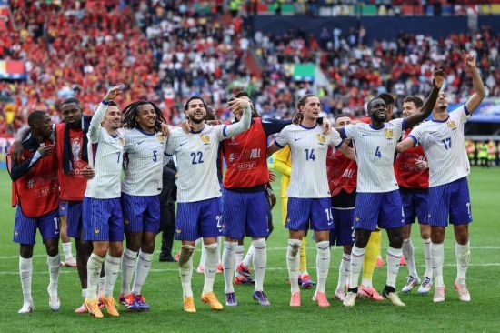7月1日,法國(guó)隊(duì)球員賽后向球迷致意。新華社記者 潘昱龍 攝