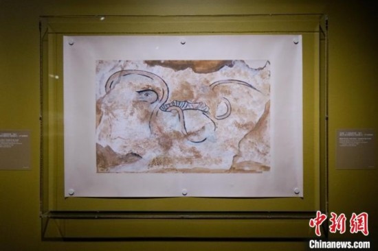 當(dāng)?shù)貢r(shí)間9月4日,百余件遼寧三燕文物亮相紐約華美協(xié)進(jìn)社中國(guó)美術(shù)館秋季特展《龍城之金:遼寧三燕文物選萃,337-436》。圖為展出的玄武圖摹本。 中新社記者 王帆 攝