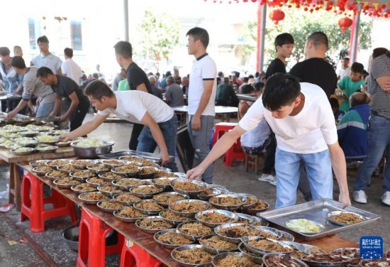 10月5日,在柳州市柳江區(qū)成團鎮(zhèn)甘塘村,人們在準(zhǔn)備重陽節(jié)百家宴。