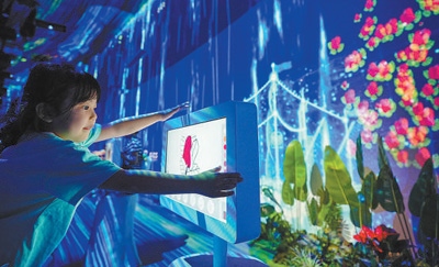 海南三亞的一處體驗(yàn)館內(nèi),小朋友在電腦屏幕上畫出“心目中的三角梅”。