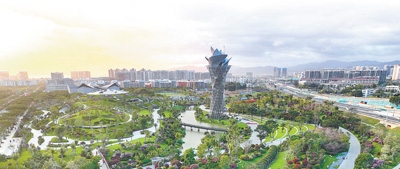 俯瞰三角梅科博園。本版圖片除署名外均為王程龍攝