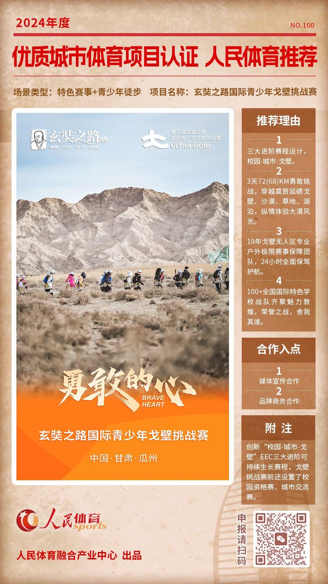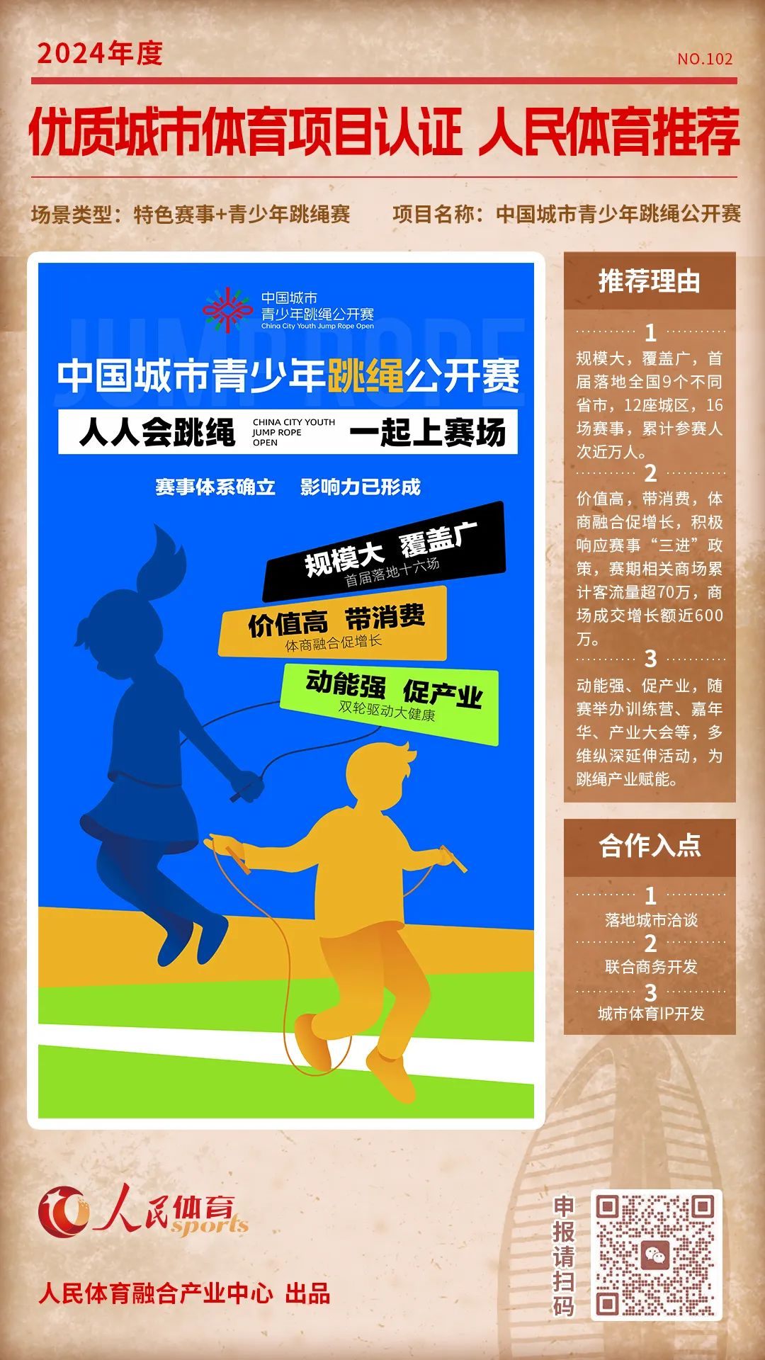 “優(yōu)質(zhì)體育賽事及活動認證推薦計劃”是人民體育“城市體育產(chǎn)業(yè)高質(zhì)量發(fā)展計劃”的重要組成部分,人民體育一直致力于攜手權(quán)威機構(gòu)、組織單位等聯(lián)合推薦優(yōu)質(zhì)項目,項目類型包括且不限于賽事、活動,也涵蓋產(chǎn)品與服務(wù)類別。旨在以更客觀的角度,展示在體育產(chǎn)業(yè)發(fā)展中有所創(chuàng)新,有所價值的項目,促進多方相互了解,融合發(fā)展。
