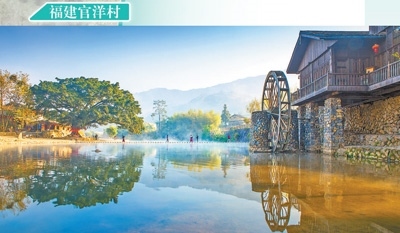 福建漳州市南靖縣官洋村,是土樓文化、閩南文化、客家文化的“大觀園”。圖為官洋村的土樓與古榕樹、溪水相得益彰。施 鈺 馮木波攝影報道