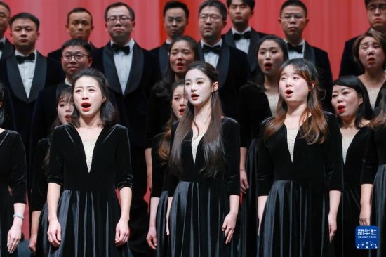 當日,“黔嶺歌飛”新年合唱音樂會在貴州省貴陽市舉行。貴州大學音樂學院愛樂合唱團等十余支合唱隊伍為市民帶來了一場獨具民族特色的音樂盛宴。