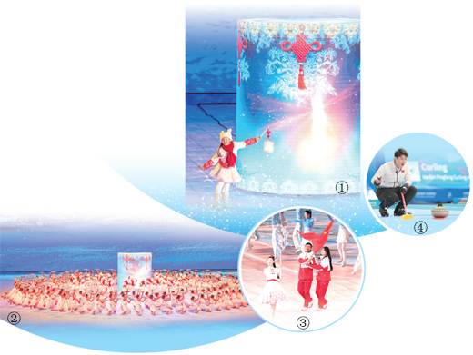 圖①②:2月7日,演員在亞冬會(huì)開(kāi)幕式上表演。