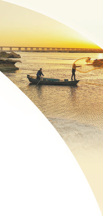 黃河磴口段,漁民在捕魚。