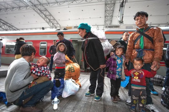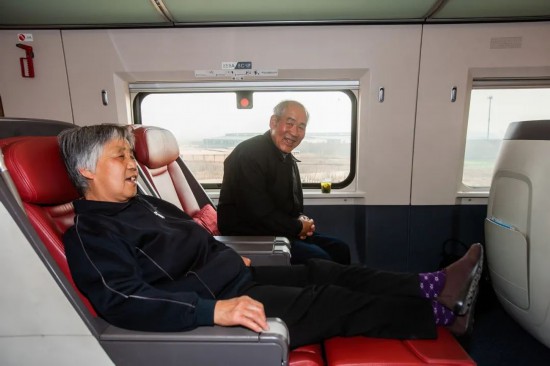2015年,一對老兩口乘坐高鐵到北京與兒子過團(tuán)圓年,實現(xiàn)反向春運。