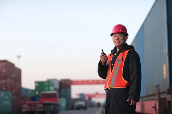 2月12日正月十五,外勤貨運員檢查裝車質(zhì)量,保障中歐班列安全運輸。
