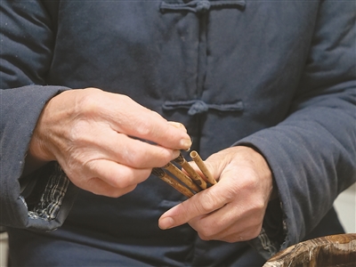 隨著制筆工藝的創(chuàng)新發(fā)展,宣筆品類如今多達(dá)幾百種。如何在守正的同時(shí)更好創(chuàng)新?這是佘征軍一直在思考的問題。在生產(chǎn)流程方面,佘征軍及其團(tuán)隊(duì)改良了筆桿材質(zhì),讓不同風(fēng)格的筆桿和筆頭都可適配,也讓產(chǎn)品設(shè)計(jì)、生產(chǎn)更標(biāo)準(zhǔn)化,有利于市場推廣。在設(shè)計(jì)風(fēng)格方面,佘征軍根據(jù)市場需求,為消費(fèi)者提供更多產(chǎn)品選擇——以老式桿秤為造型的“稱心如意筆”、兼具實(shí)用與審美功能的簪筆、集筆頭與筆桿于一體的竹筆……一支支別具新意、造型新穎的宣筆新品,備受市場青睞。佘征軍笑著說:“讓毛筆走出書房,進(jìn)入現(xiàn)代生活,也算是樂事一件?!?/p>