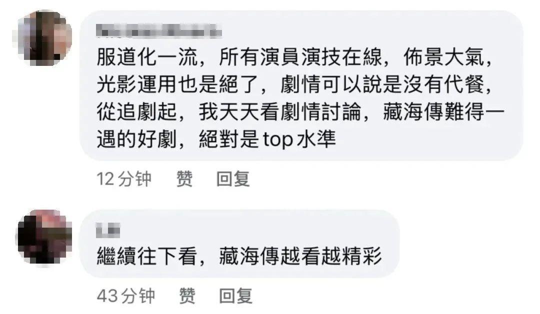 “畫面、場景、演技、情節(jié),各方面都近乎完美,相當優(yōu)良的制作”,“服化道一流,演員演技在線,布景大氣”,“感受到了老祖宗的審美”,“連看兩遍,因為很多細節(jié)值得細品”……一些臺灣觀眾在“看臺?!焙M馄脚_留言大贊劇集,足見這部叫好叫座的總臺大劇深深吸引了臺灣觀眾。