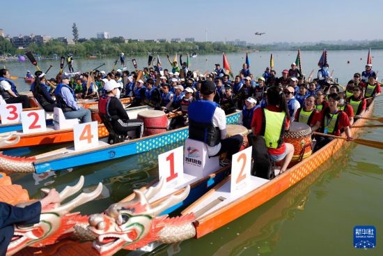 5月31日,參賽隊伍在湖面集結(jié)準備比賽。