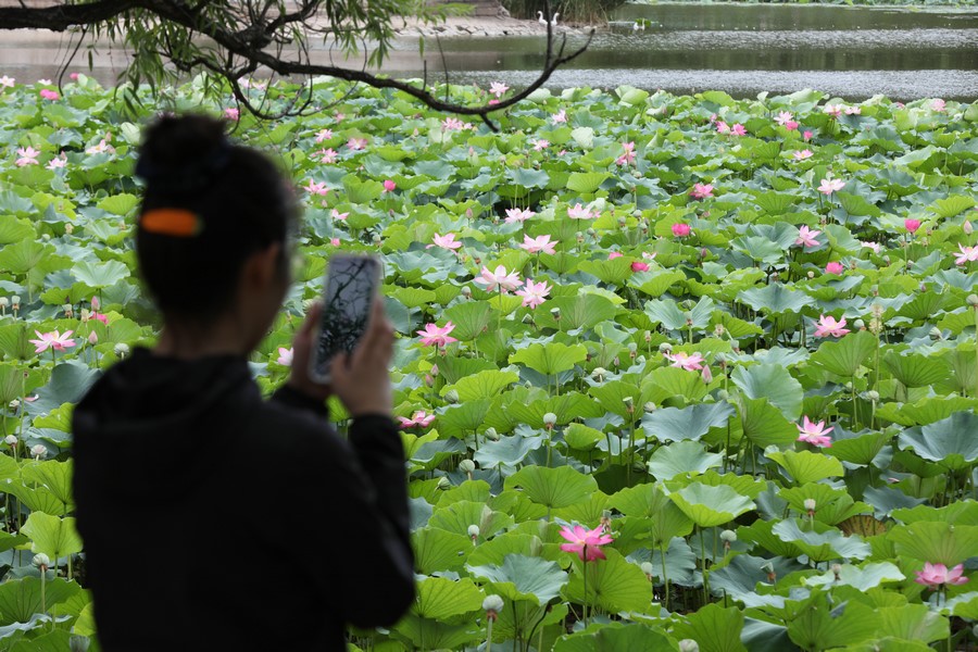 7月30日,呼和浩特青城公園的荷花進入最佳觀賞期,吸引眾多游人前來打卡。