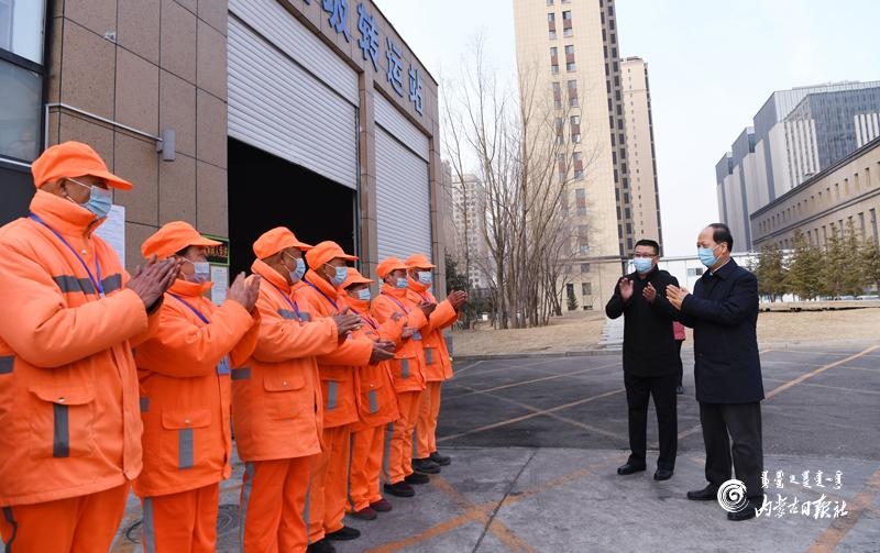 2月11日,自治區(qū)黨委書記、人大常委會(huì)主任石泰峰慰問(wèn)呼和浩特市賽罕區(qū)環(huán)衛(wèi)局萬(wàn)正生活垃圾轉(zhuǎn)運(yùn)站一線環(huán)衛(wèi)工人,向他們致以新春的祝福。