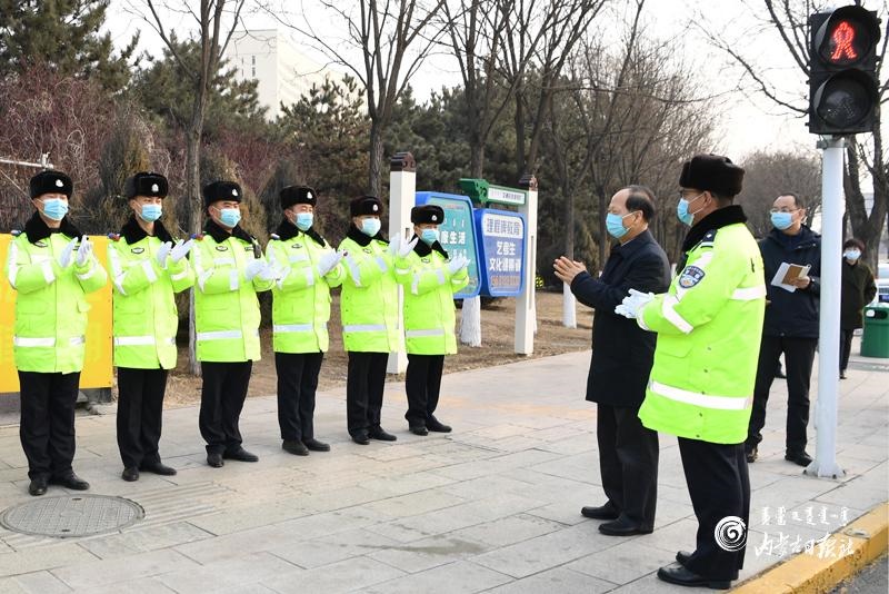 2月11日,自治區(qū)黨委書記、人大常委會(huì)主任石泰峰慰問(wèn)春節(jié)期間堅(jiān)守崗位的執(zhí)勤交警,向他們致以新春的祝福。 內(nèi)蒙古日?qǐng)?bào)社融媒體記者 袁永紅 攝