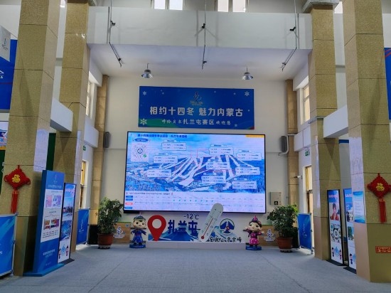 滑雪場(chǎng)接待大廳中的氣象信息大屏。新華社記者 張武岳 攝