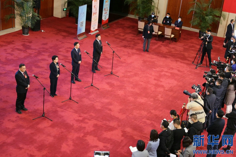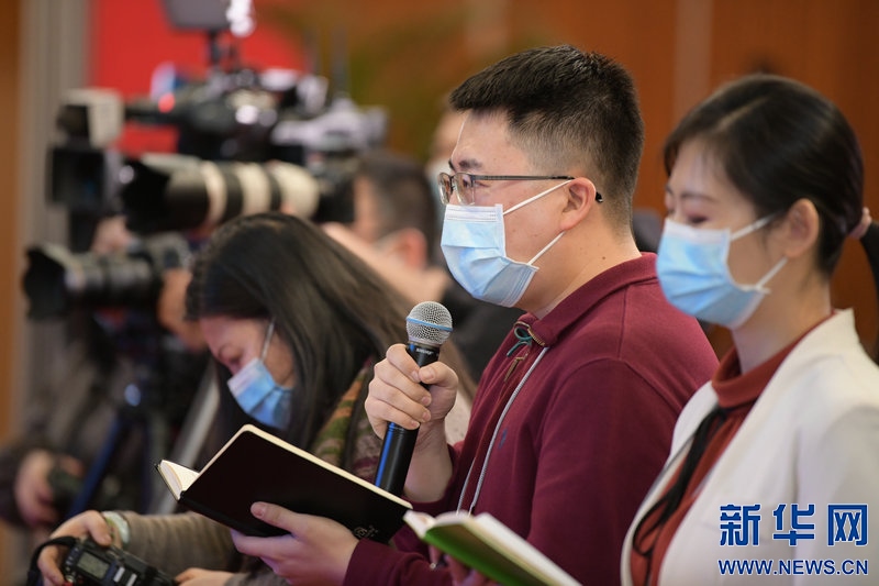 媒體記者在“代表通道”上提問。新華網(wǎng) 曹楨攝
