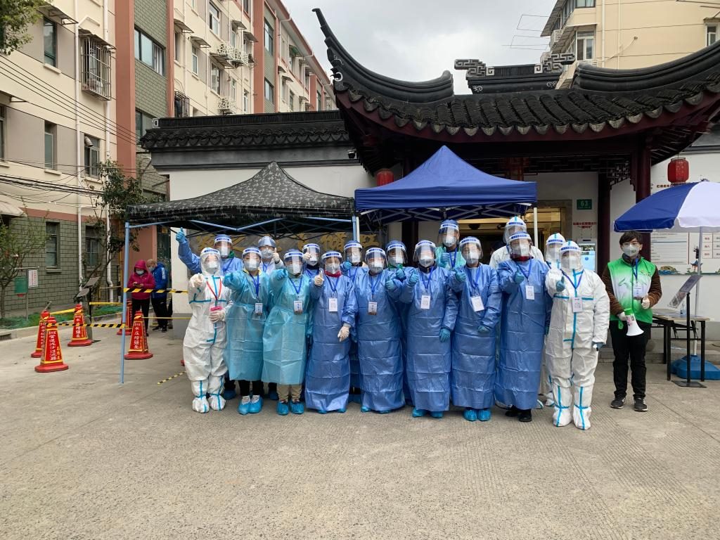 虹儲居民區(qū)核酸檢測采樣點(diǎn),黨員干部、醫(yī)務(wù)工作者以及來自各行各業(yè)的志愿者共同抗疫。受訪單位供圖