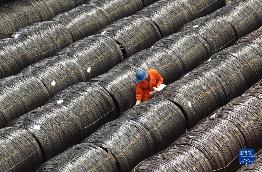 2017年5月15日,東北特鋼集團(tuán)工作人員在核對入庫的合金鋼大盤重線材產(chǎn)品標(biāo)識。新華社發(fā)(劉德斌 攝)