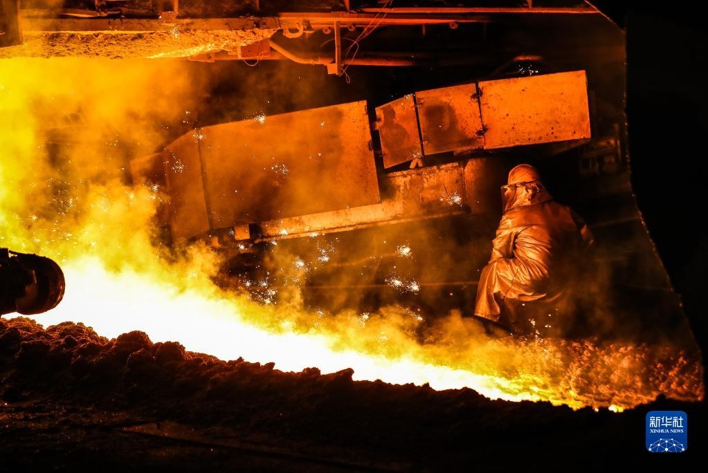 2021年7月1日,工人在鞍鋼股份煉鐵總廠新四號高爐進(jìn)行生產(chǎn)作業(yè)。新華社記者 潘昱龍 攝