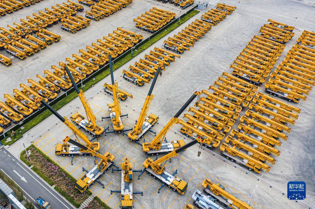 這是5月9日拍攝的江蘇徐工集團(tuán)重型機械有限公司的產(chǎn)品調(diào)試場(無人機照片)。新華社發(fā)