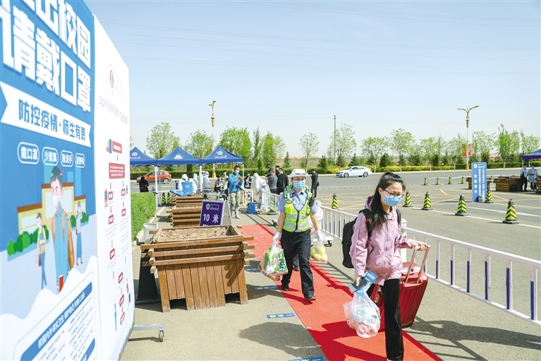 當日一早,內(nèi)蒙古師范大學盛樂校區(qū)的教職工按照疫情防控等有關部門的規(guī)定和要求,統(tǒng)一進行接站、入校、消殺、掃碼等一系列程序,以保學生安全返校。