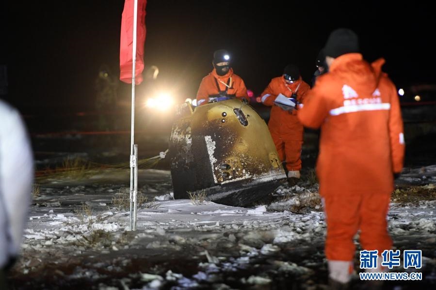 12月17日凌晨,嫦娥五號返回器攜帶月球樣品,采用半彈道跳躍方式再入返回,在內(nèi)蒙古四子王旗預定區(qū)域安全著陸。新華社記者 任軍川 連振 彭源 攝